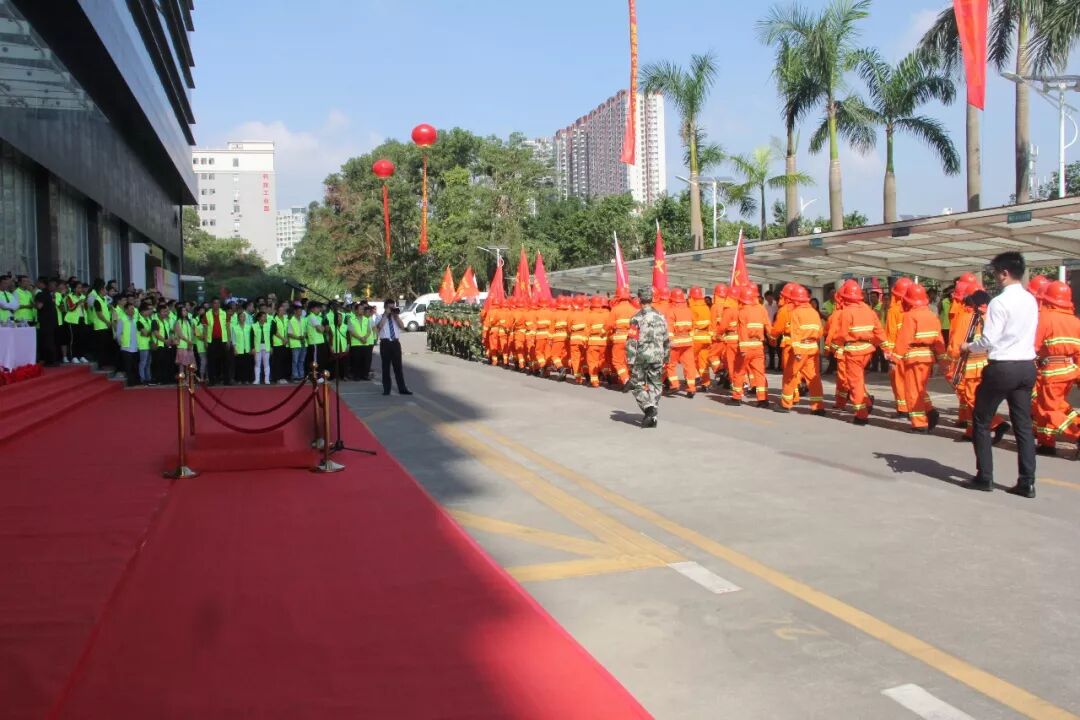 此次“黨建+安全” 暨“119平安月”系列活動共分為消防隊隊列操展示比賽、消防緊急逃生演練、消防訓練比武大賽、“落實消防主體責任知識競賽”和“黨的知識競賽”四個部分。